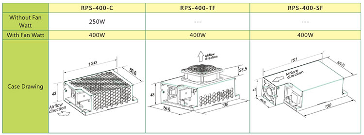 RPS-400/-C/-TF/-SF 系列 (400W小型化绿能基板型与机壳型医疗用电源供应器)