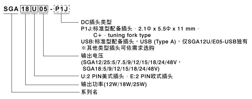SGA12/18/25(U/E)12W/18W/25W宽插墙式绿能适配器